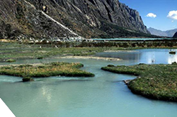 Chavín is located at the beginning of a narrow valley formed by the Pukcha or Mosna River, which originates from the melt water of the Cordillera Blanca and runs down to the Marañón River, one of the tributaries of the Amazon.